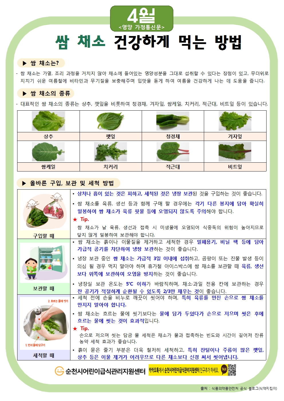 쌈 채소 건강하게 먹는 방법-순천시어린이급식지원센터