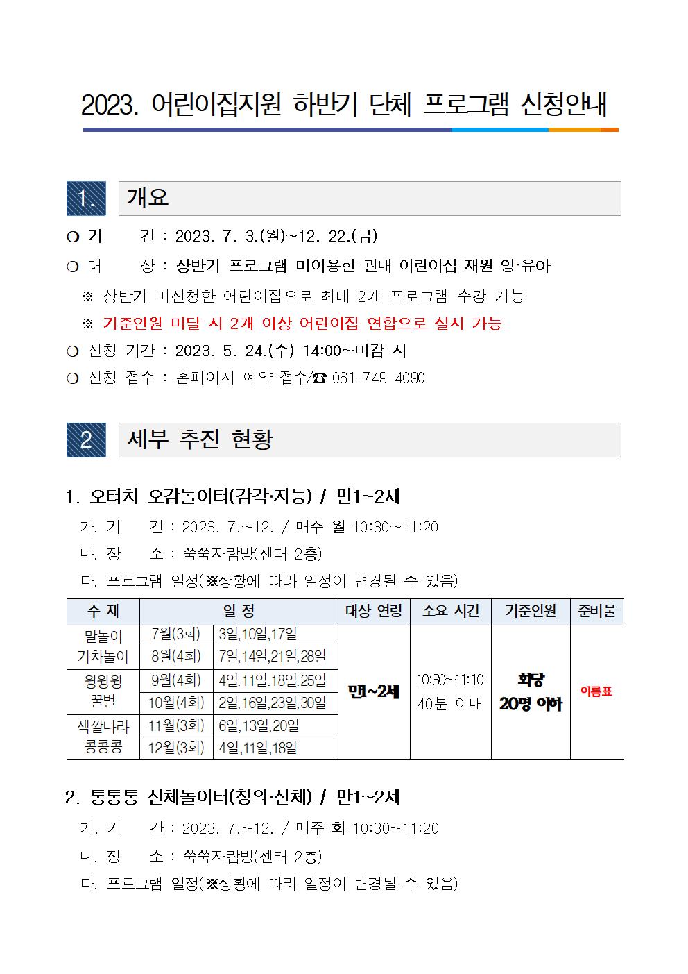 2023. 하반기 단체프로그램 예약 안내(7월~12월)