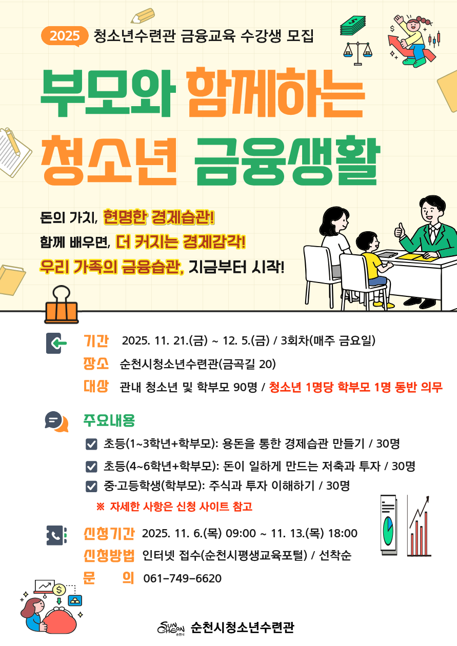 2025년 순천시 청소년수련관「부모와 함께하는 청소년 금융생활」수강생 모집