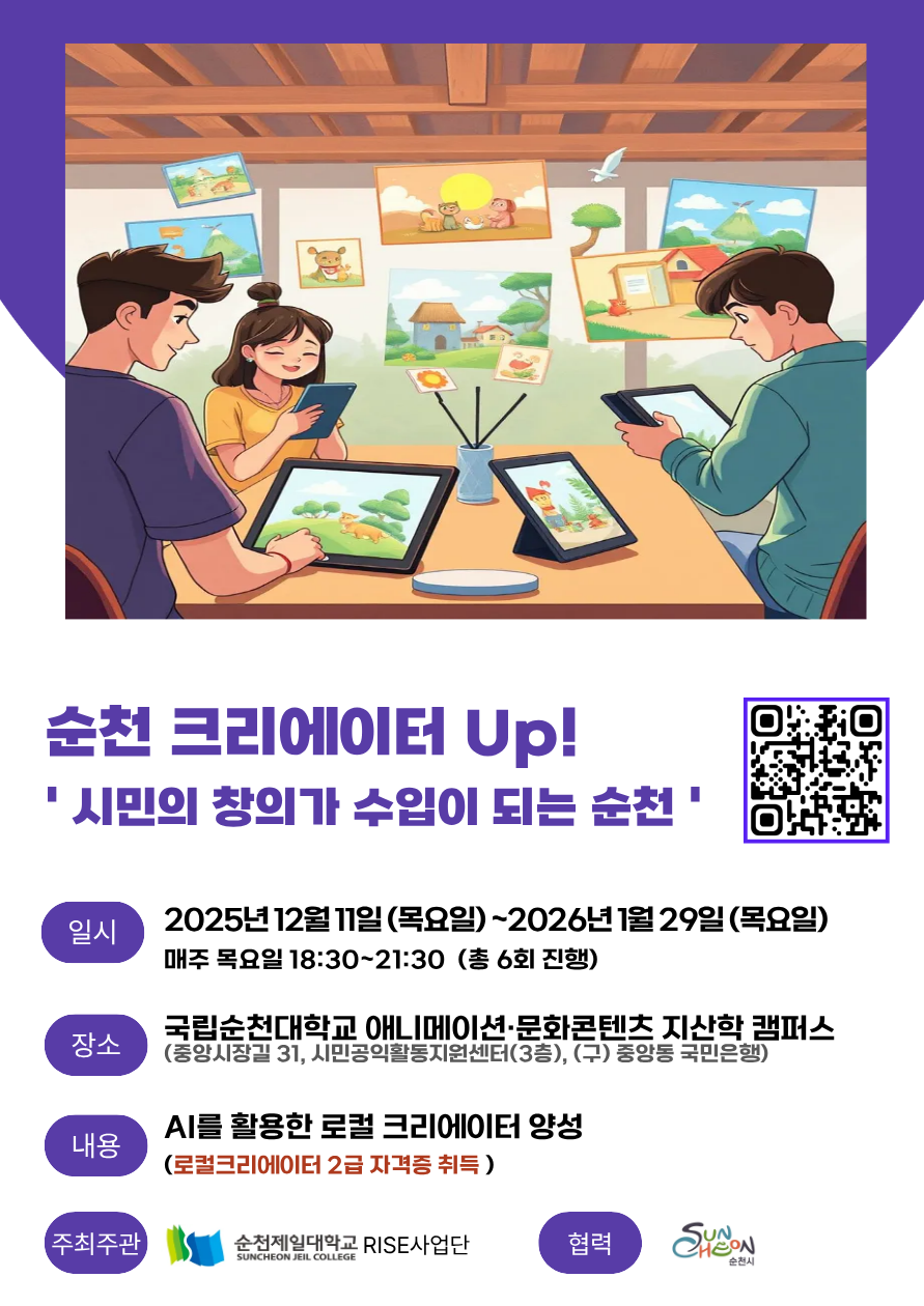 전라남도 RISE 사업 시군 동반성장 프로젝트 「순천 크리에이터 UP!」 프로그램 안내