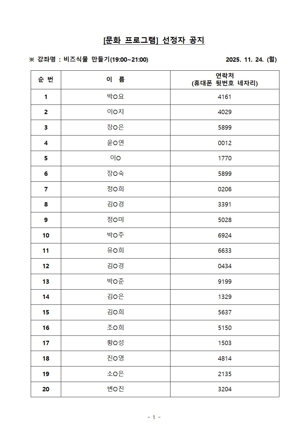 선정자를 공지해 드립니다.